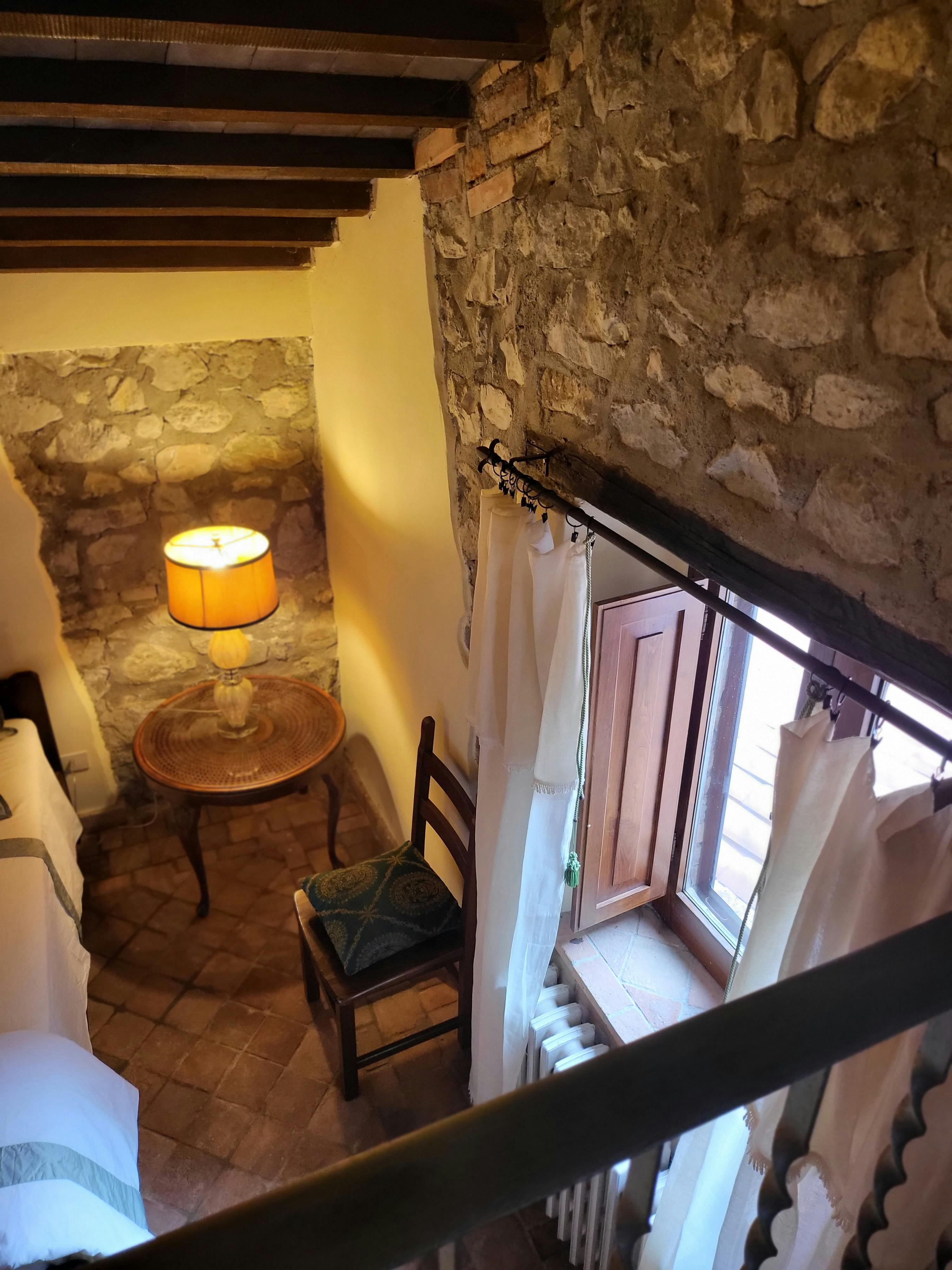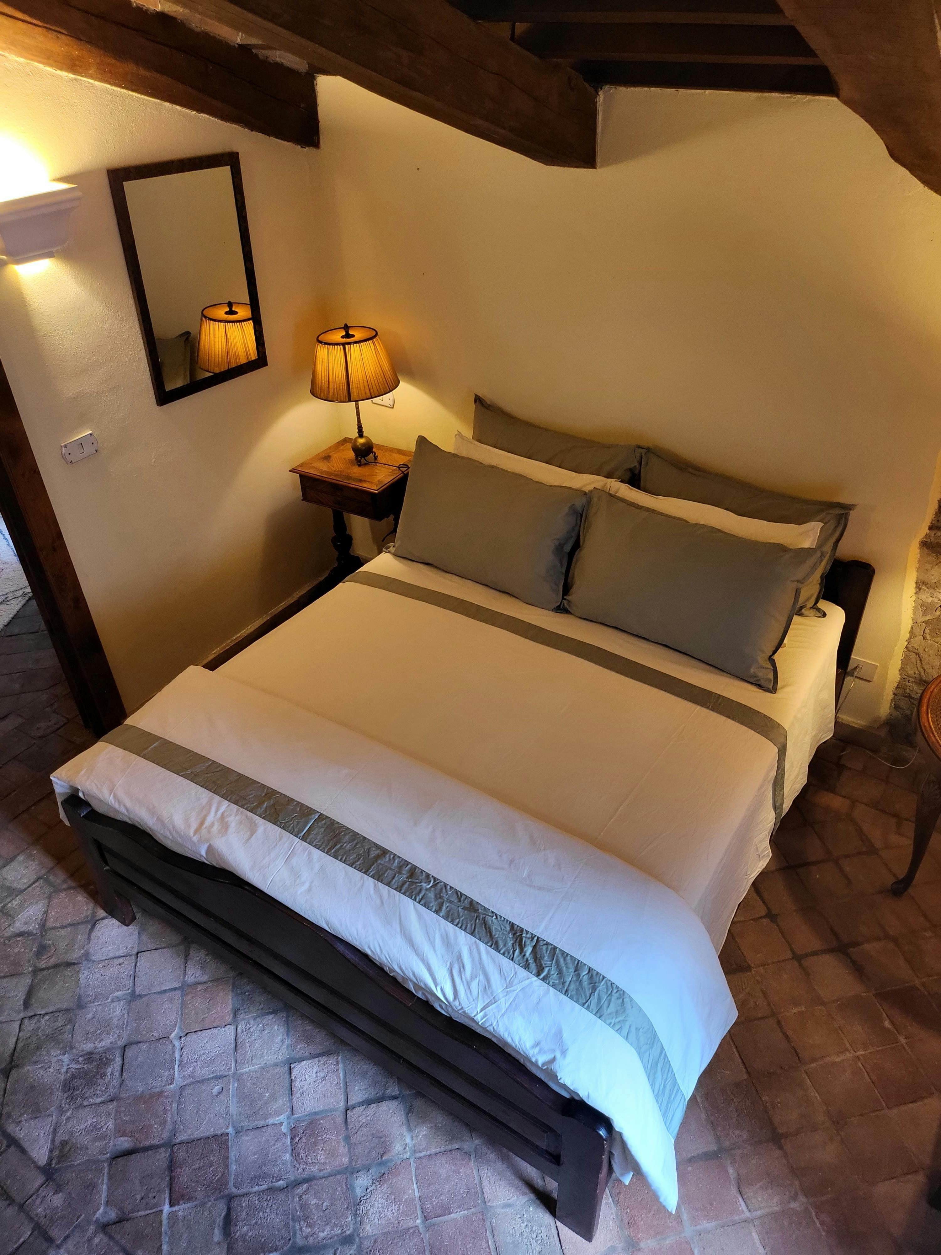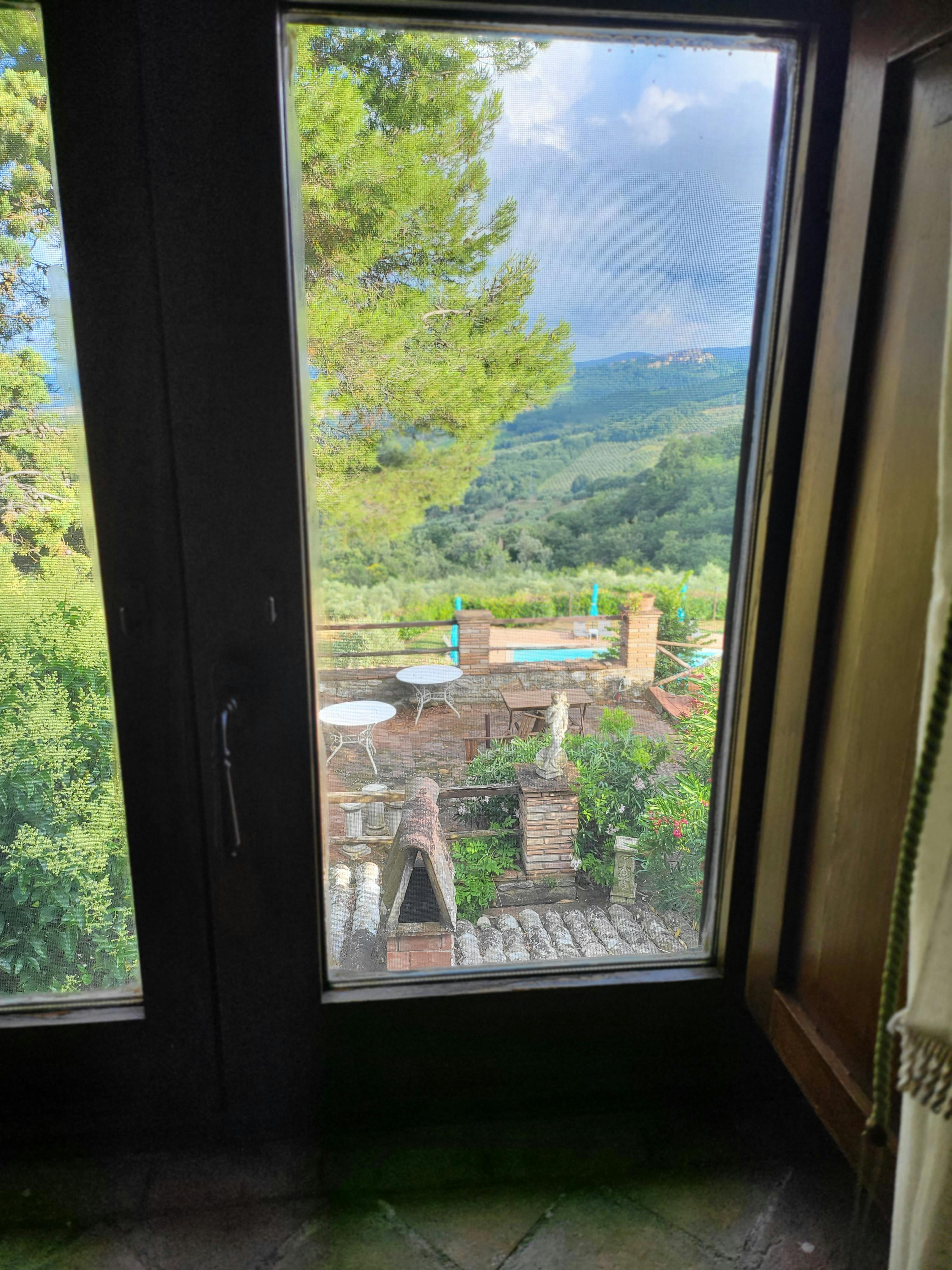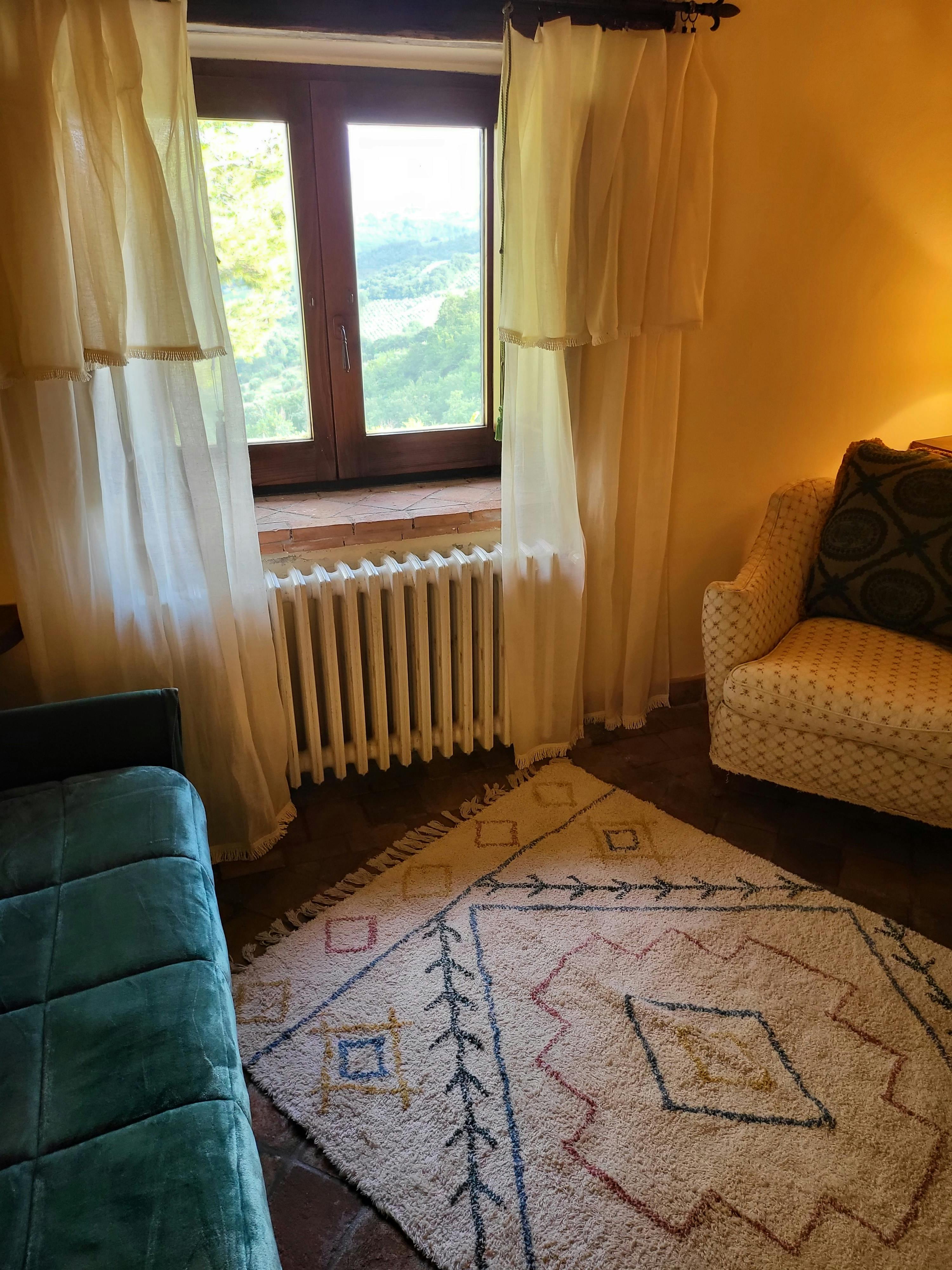 Camera da letto con letto matrimoniale (160x200) e piccola zona giorno. Nel bagno trovate asciugamani, asciugacapelli e doccia. La biancheria da letto è inclusa. Vista panoramica.